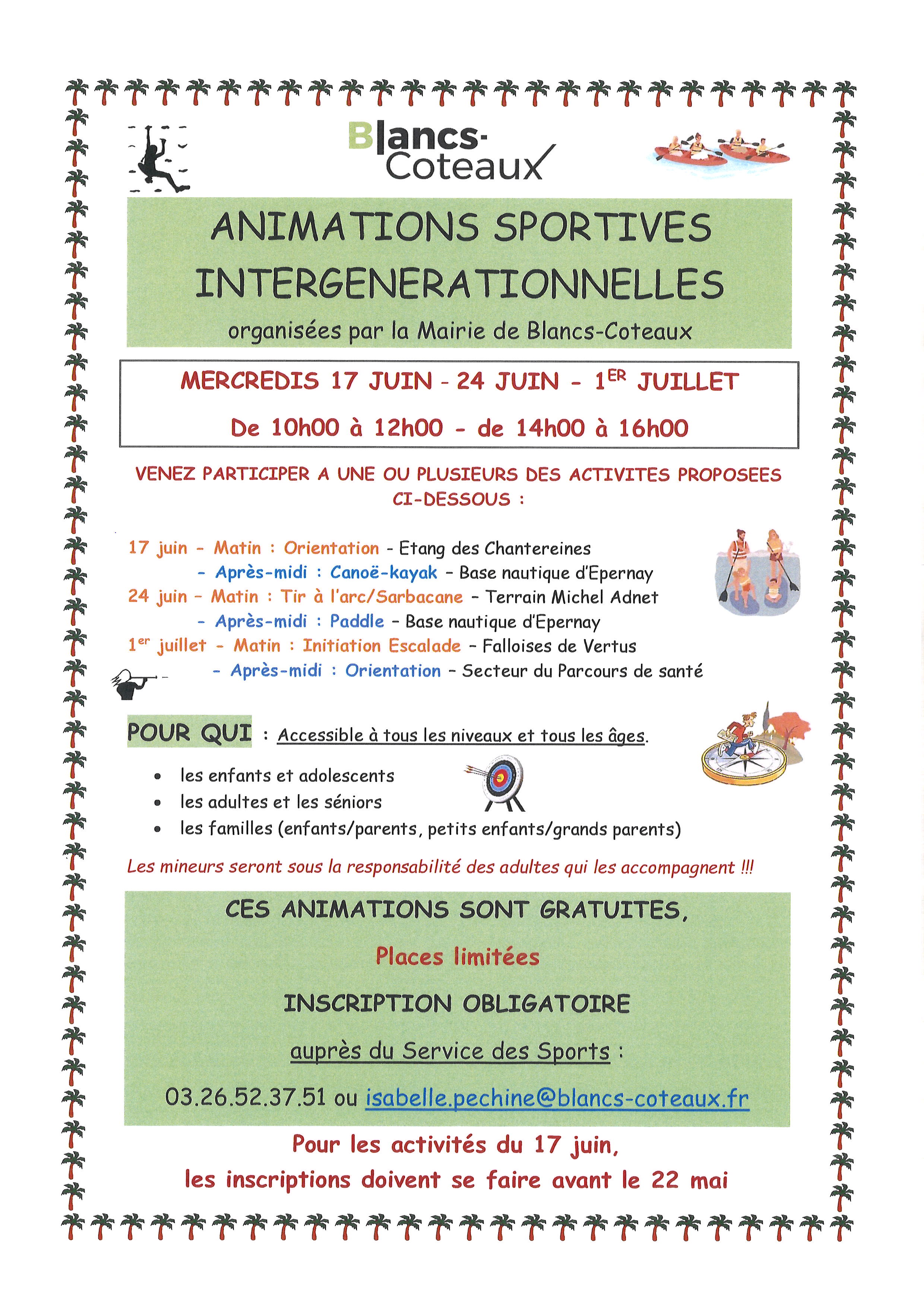 Animations sportives intergénérationnelles - BLANCS-COTEAUX